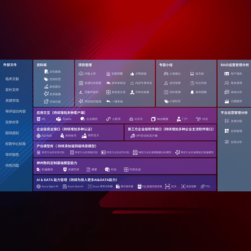医疗器械产品上市前,,,要熟悉严格与繁复评审标准,,,,整理分析监管机构指导文件中的海量信息。。。企业急需一个智能化解决方案,,,,提升知识管理效率,,,提高评审通过率,,,,以提升其市场竞争力。。。